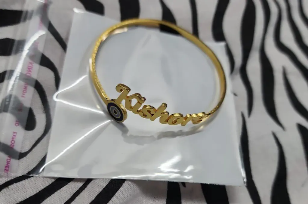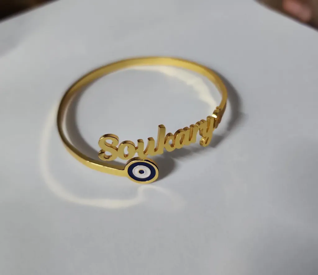 This elegant bracelet features your partner’s name beautifully crafted in a stylish script, paired with the powerful evil eye charm, believed to protect your love from negativity and bring good energy.